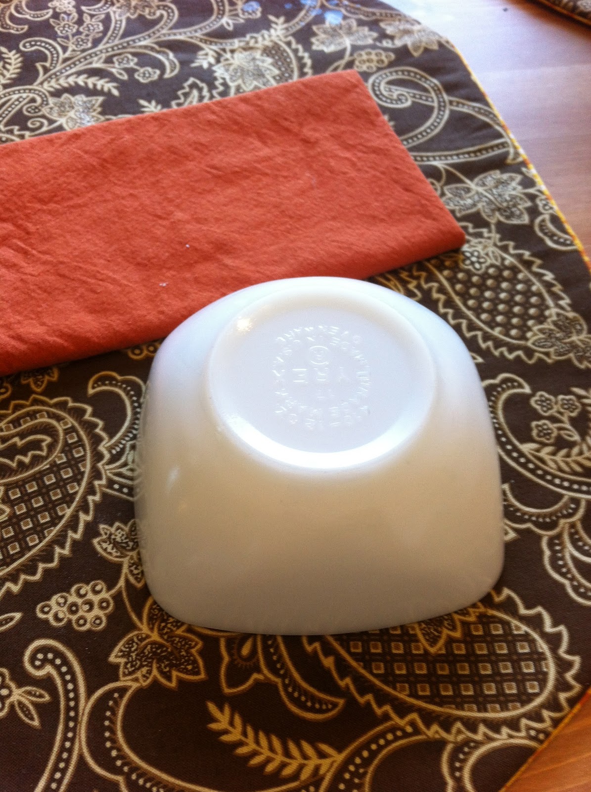Now for the mystery...About a week ago I ordered an opal ramekin from an Etsy seller who advertised it as a piece from an Opal Hostess Set. After a post here and several hours of Googeling I was fairly certain that what I actually got was a piece of an Agee ramekin set; however, upon it's arrival it's stamped made in the USA so that threw that theory out the window. I contacted the seller and he assures me it's a piece to an Opal Hostess....but I can't find out anything about this set. He gave me the link of a woman on flikr who has the whole set so I contacted her but she hasn't been able to find out anything either ( I checked out the pics of her set and it looks exactly like mine). I did get in touch with the individual who runs the correlcorner and they assured me there is no such thing as an opal white hostess set and what I have is a piece of a red or yellow that's faded. But honestly I've never run across a faded piece that looks exactly like my other opal pieces, it's not matted and has a nice glossy sheen, no scratch or scuff marks or hint of any residual color that so often comes with damaged and dish washed pieces. So...I don't know. I've posted pictures below and it's labeled on the bottom 410 12 oz Pyrex. If anybody knows anything about this piece I'd greatly appreciate your information before I drive myself crazy!